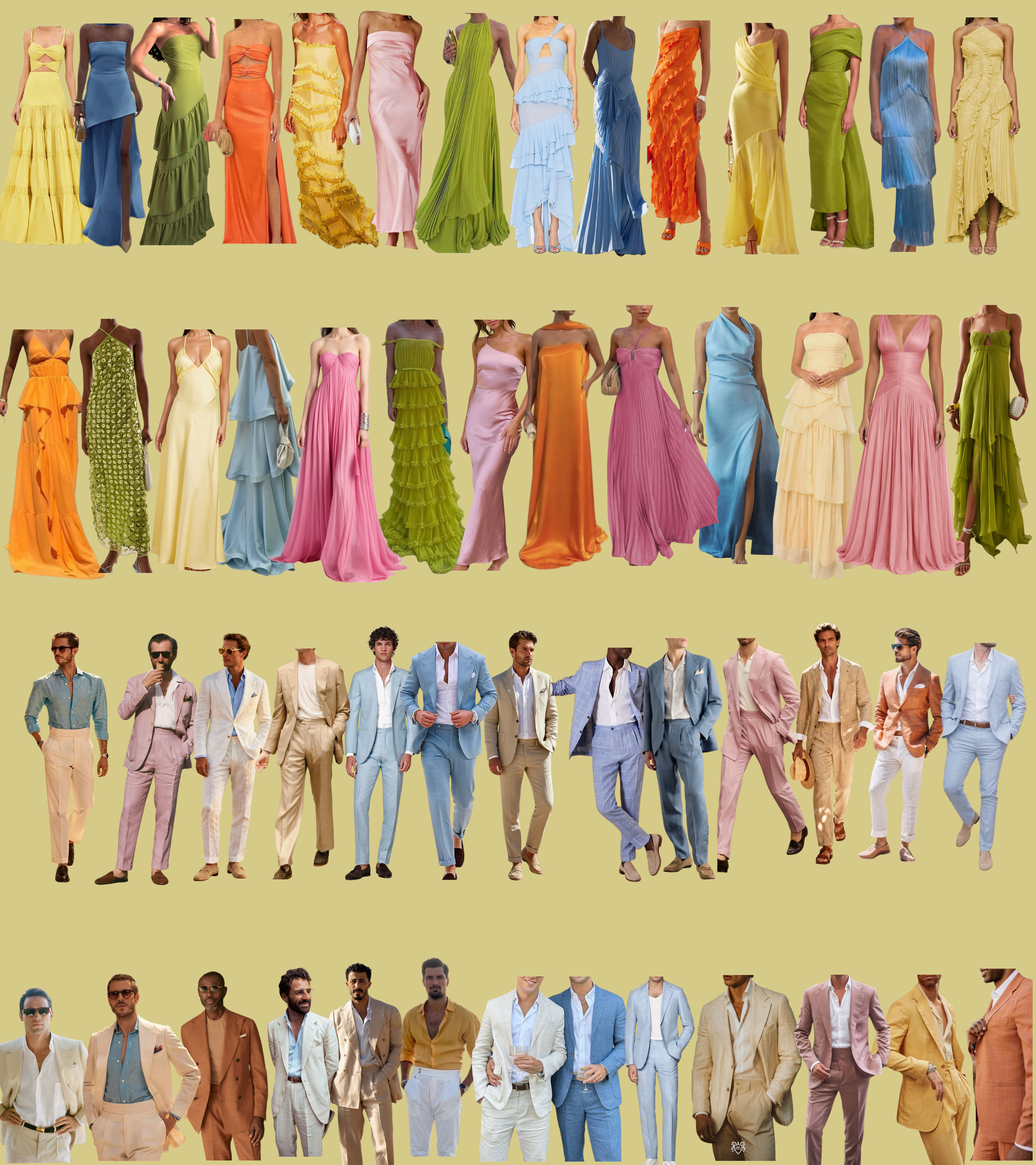 Para los caballeros evitar el negro, café y el verde se reserva para el novio.